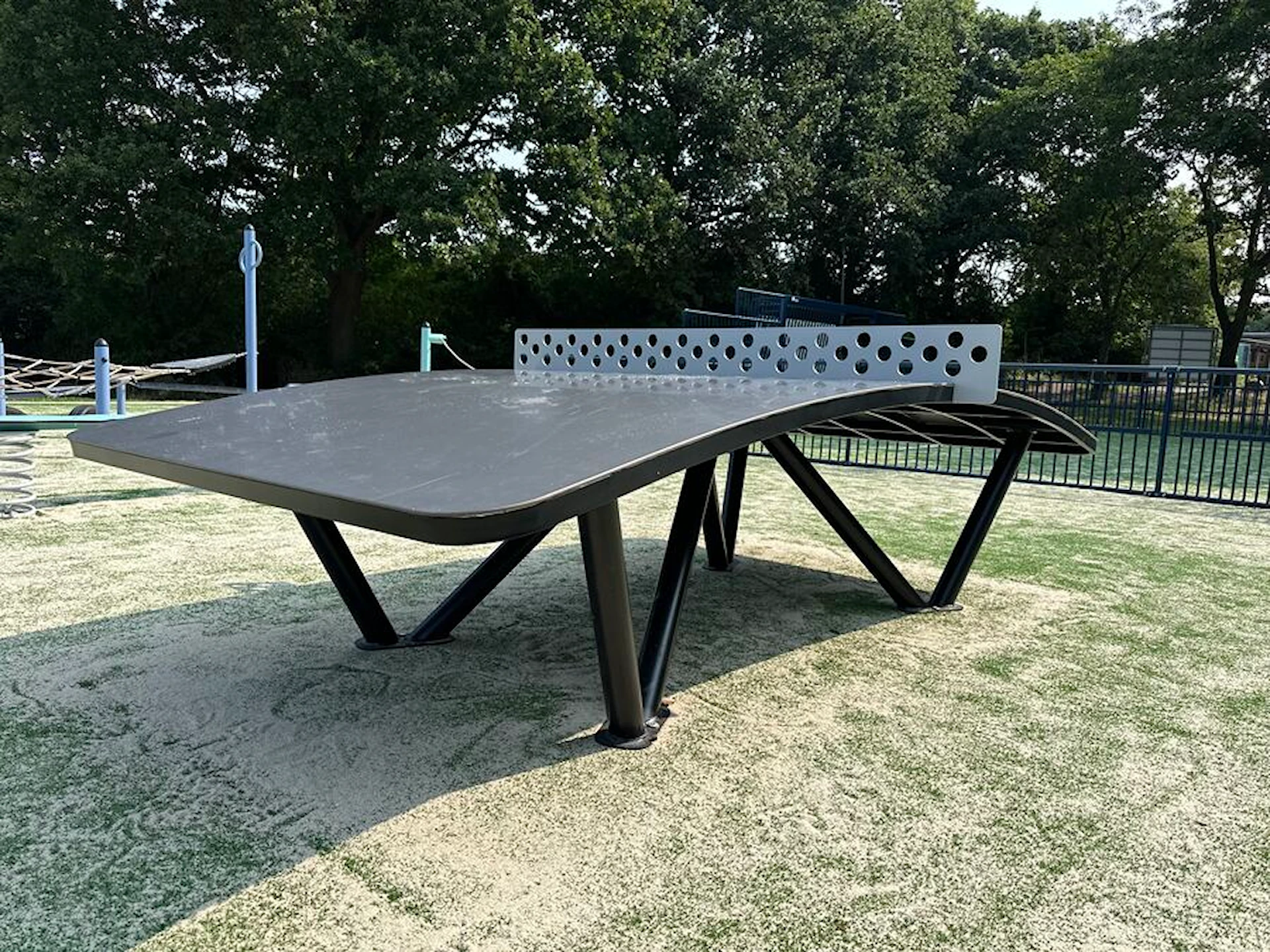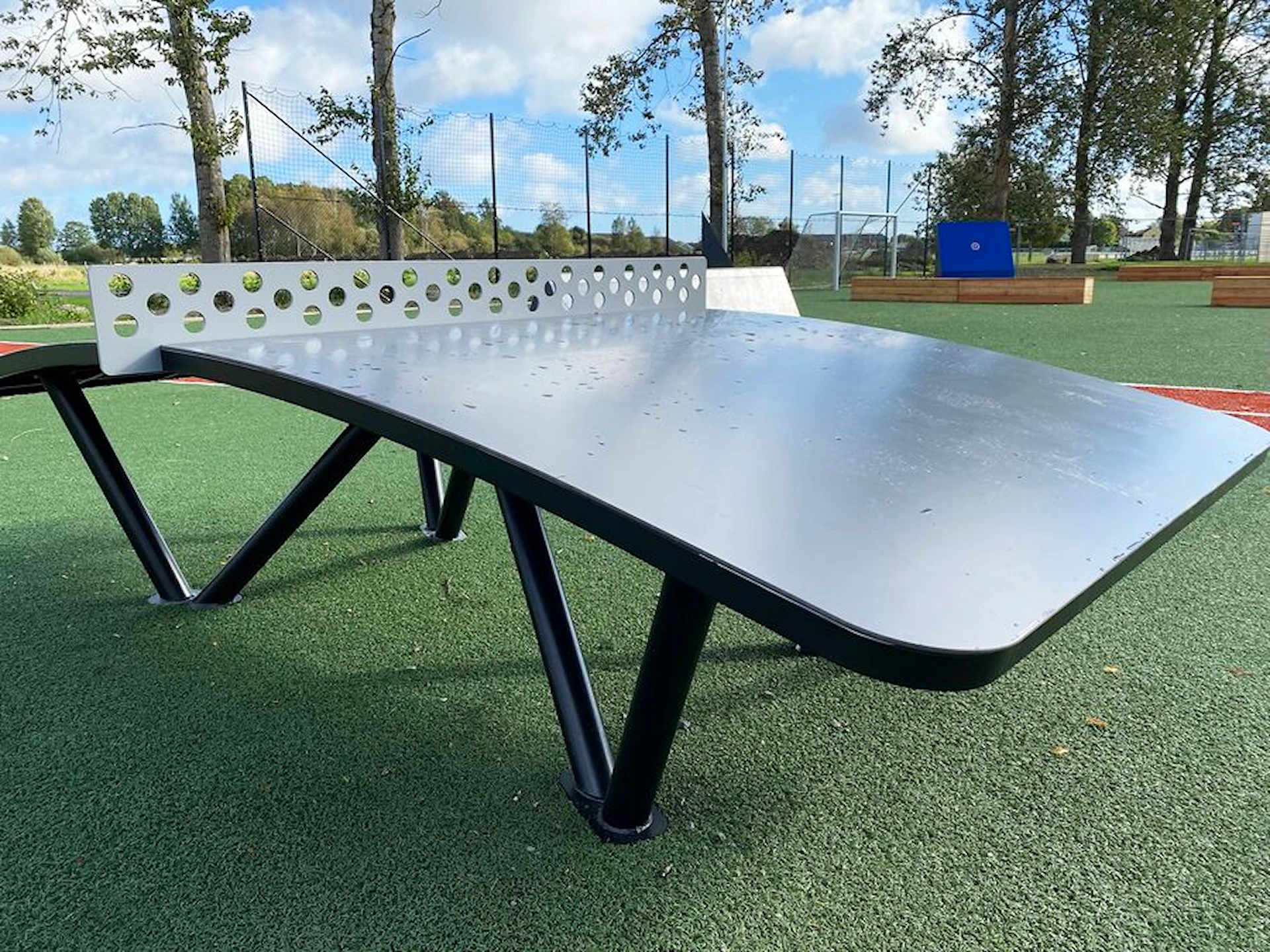 Et meget robust bord af varmgalvaniseret og pulverlakeret stål.