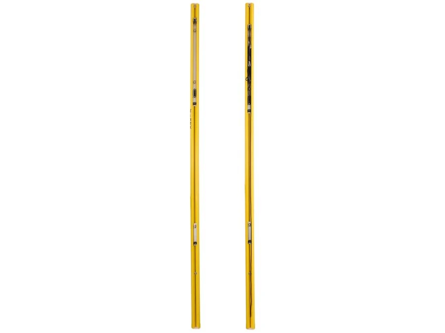 Stolperne er udstyret med et indbygget hejsesystem, hvor netopspænding og højdejustering klares nemt via en trinløs, integreret løsning med talje og låsemekanisme. Systemet sikrer, at netopspændingen justeres uden vrid eller sammenfiltrede snore. Alle komponenter er skjult inde i stolpen for et ryddeligt og funktionelt udtryk.