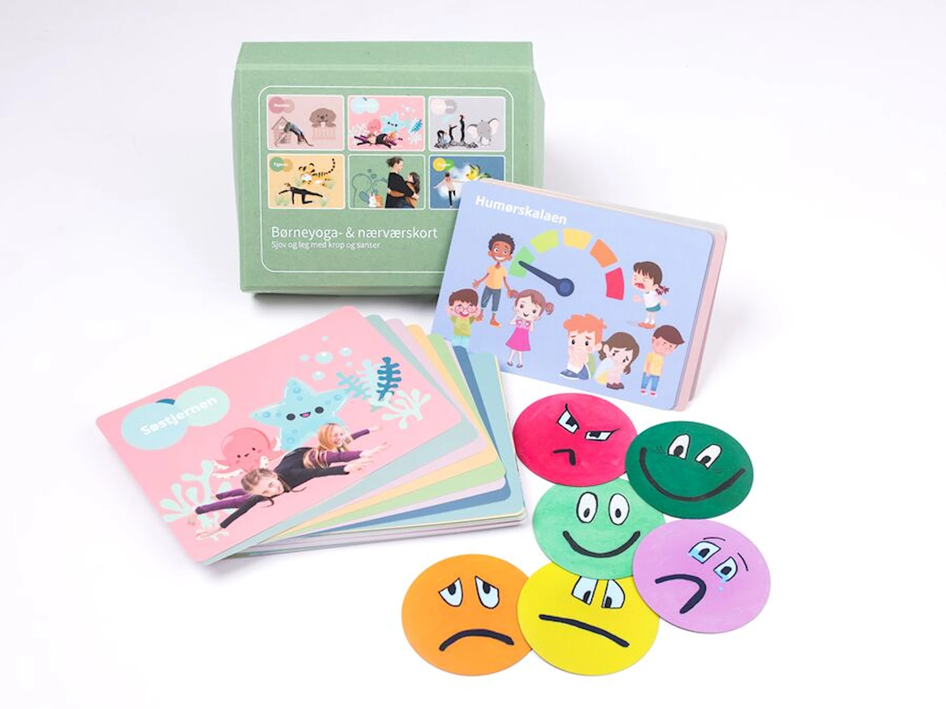Yoga- og nærværs kort æsken indeholder let tilgængelige elementer med konkrete anvisninger på hvad du har brug for, til at styrke børnenes evne til at regulere gennem bevægelsesaktiviteter, leg, yoga, nærvær og fysisk kontakt: