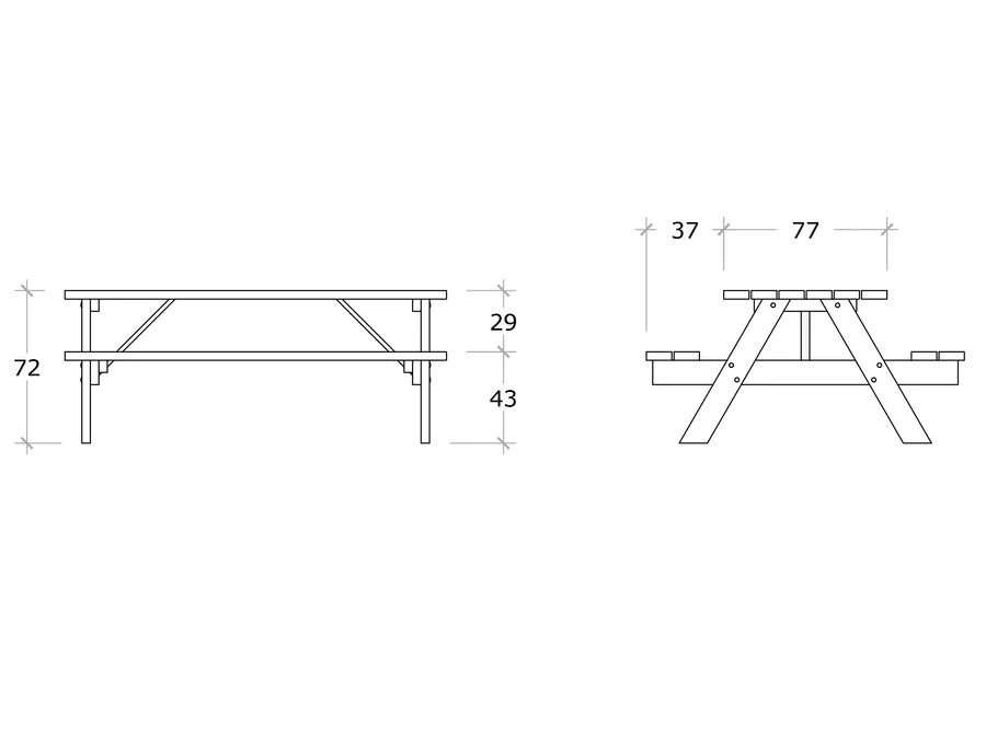 Sæder og bordplade leveres færdigsamlede, så det er nemt at samle og hurtigt kan tages i brug.