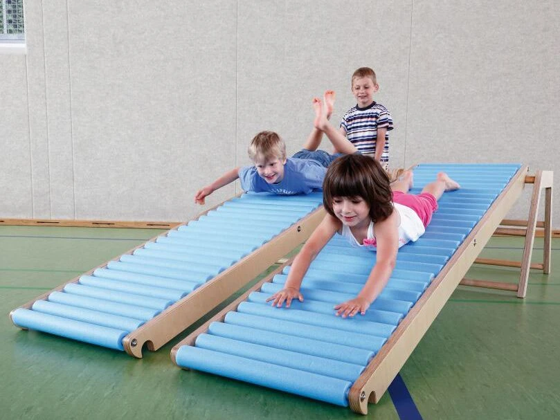 Børnene kan rulle ned på rutsjebanen i liggende eller siddende stilling, de kan rulle fremad eller bagud, og enten alene eller flere sammen.