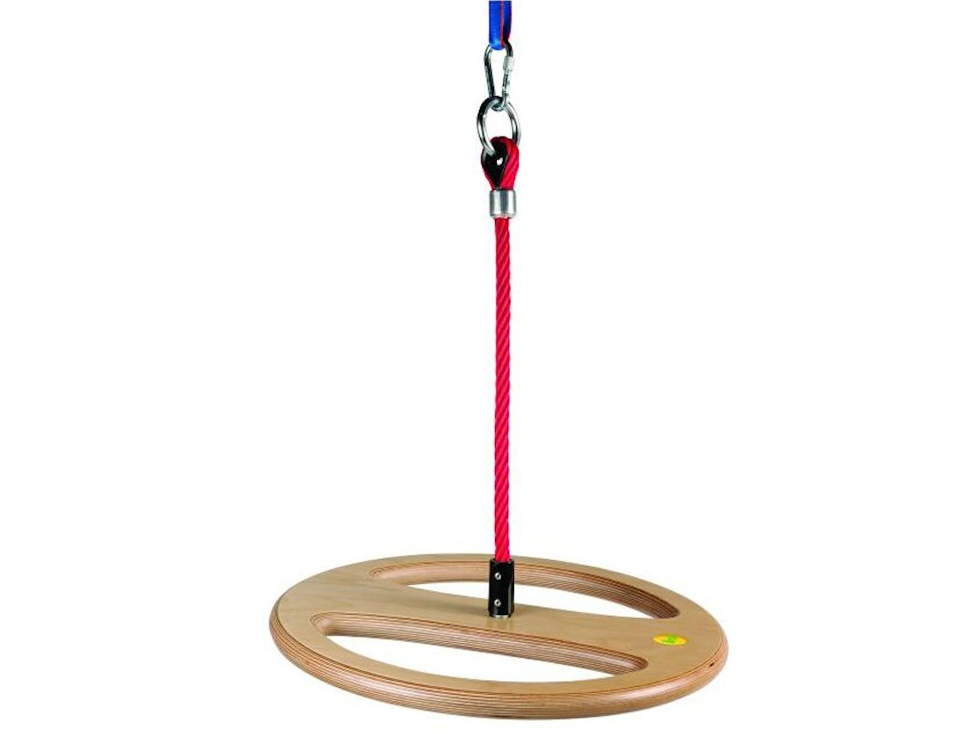 Den er lavet af lakeret træ og kan bruges både indendørs og udendørs. Ringen til ophæng er i galvaniseret stål og hænges blot på en egnet krog, ophængsbeslag eller gyngestativ.