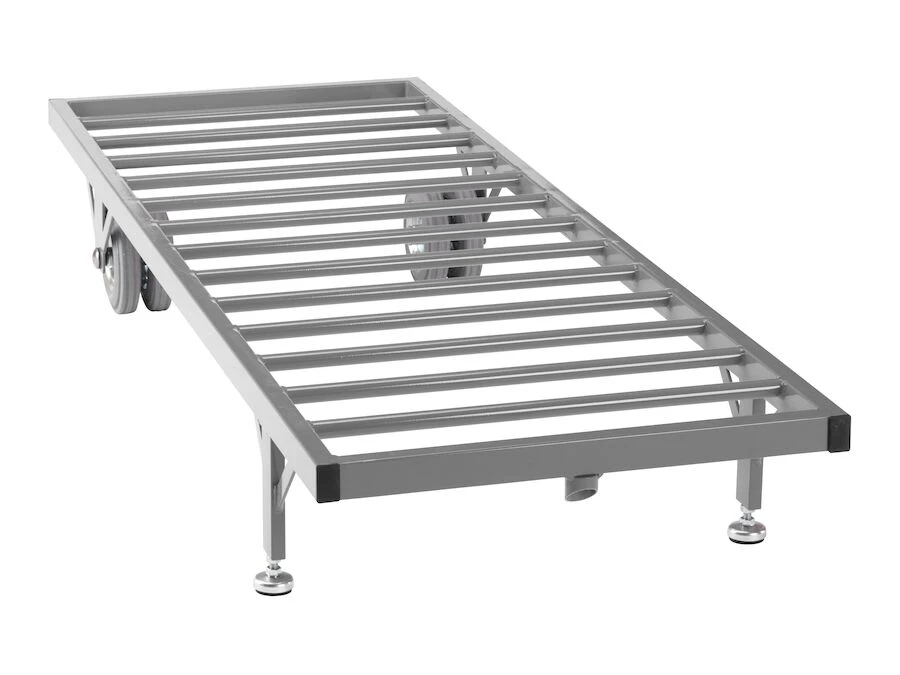 Vognen står stabilt, når den ikke er i brug, takket være de gummibelagte stillesko.