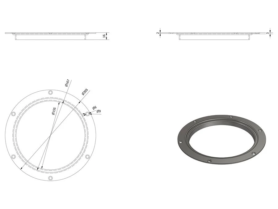 Spørg efter DWG fil på Flange i rustfrit stål Ø 205 mm