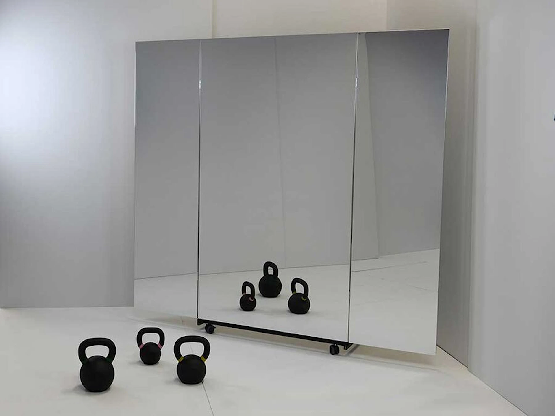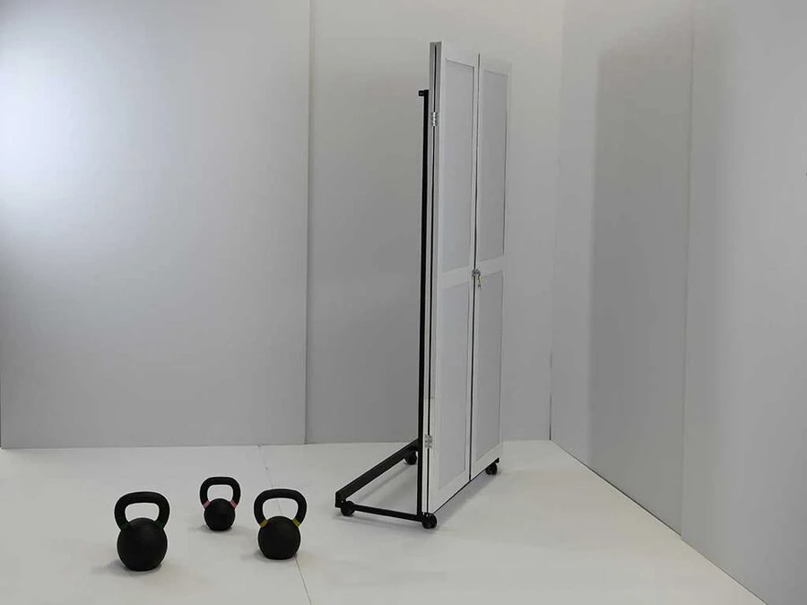 Den foldbare konstruktion gør spejlvæggen nem at transportere og stille til side efter behov. Bruges ofte i gymnastiksale, danselokaler og fysioterapirum, hvor man ønsker et let og sikkert spejl, som kan flyttes og opbevares uden besvær.