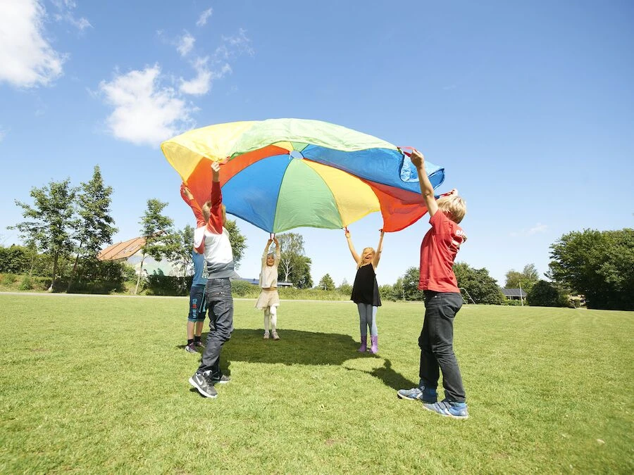 Aktiviteter med faldskærm kan tilpasses børn og voksne og bruges både til bevægelseslege, rytmik og teambuilding.