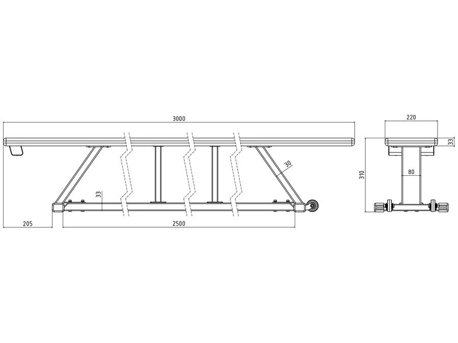Denne gymnastikbænk fås i 300 og 400 cm længde.