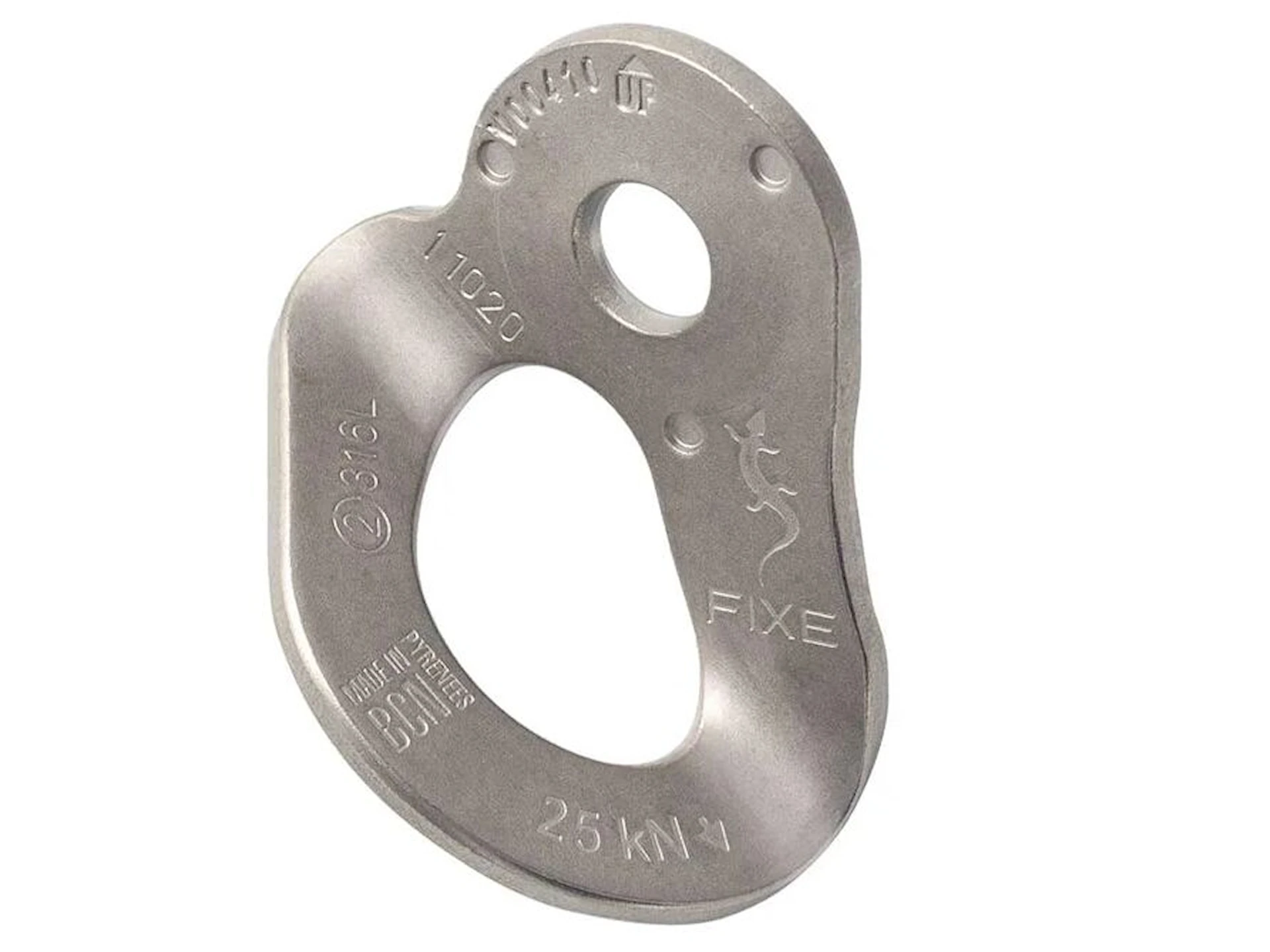 Den afrundede indvendige geometri mindsker påvirkningen af karabiner ved gentagen brug. Tre antirotationspunkter på bagsiden modvirker rotation efter montering og bidrager til et stabilt fastgørelsespunkt.