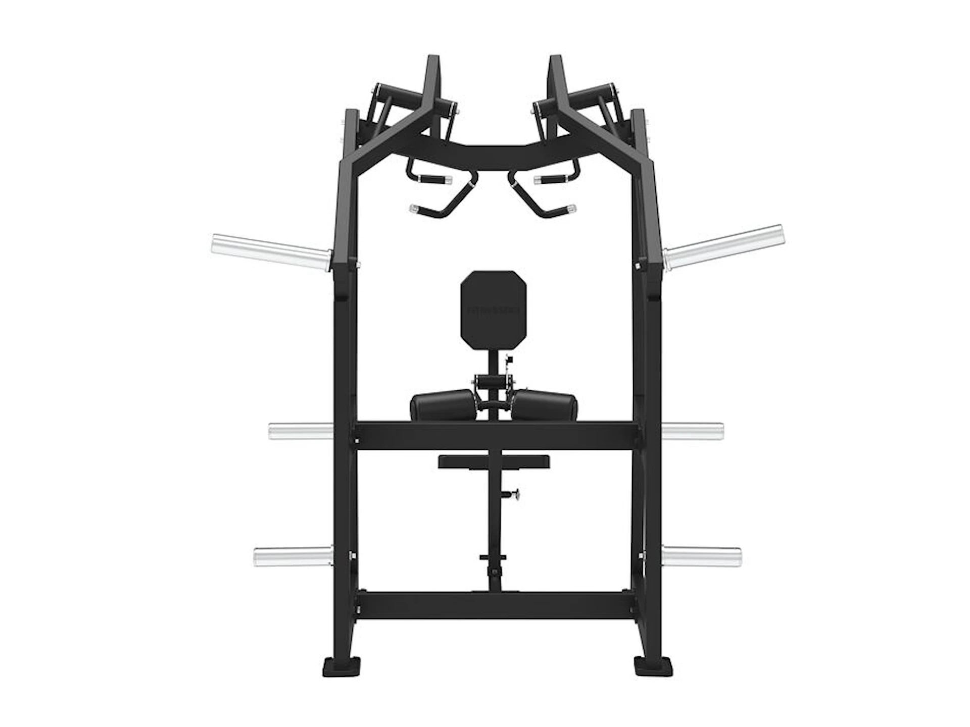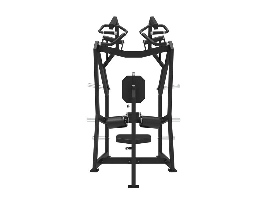 Maskinen er udstyret med tre forskellige grebspositioner med anti-slip, støttehåndtag samt et justerbart sæde og rullepude, der gør det nemt at tilpasse startpositionen. Der er ingen fast vægtmagasin – i stedet har maskinen to “load sleeves” på armene, hvor brugeren frit kan justere belastningen med Ø50 mm vægtskiver (vægtskiver er ikke inkluderet). To ekstra vægtskive-pins på hver side giver praktisk opbevaring af vægtskiver.