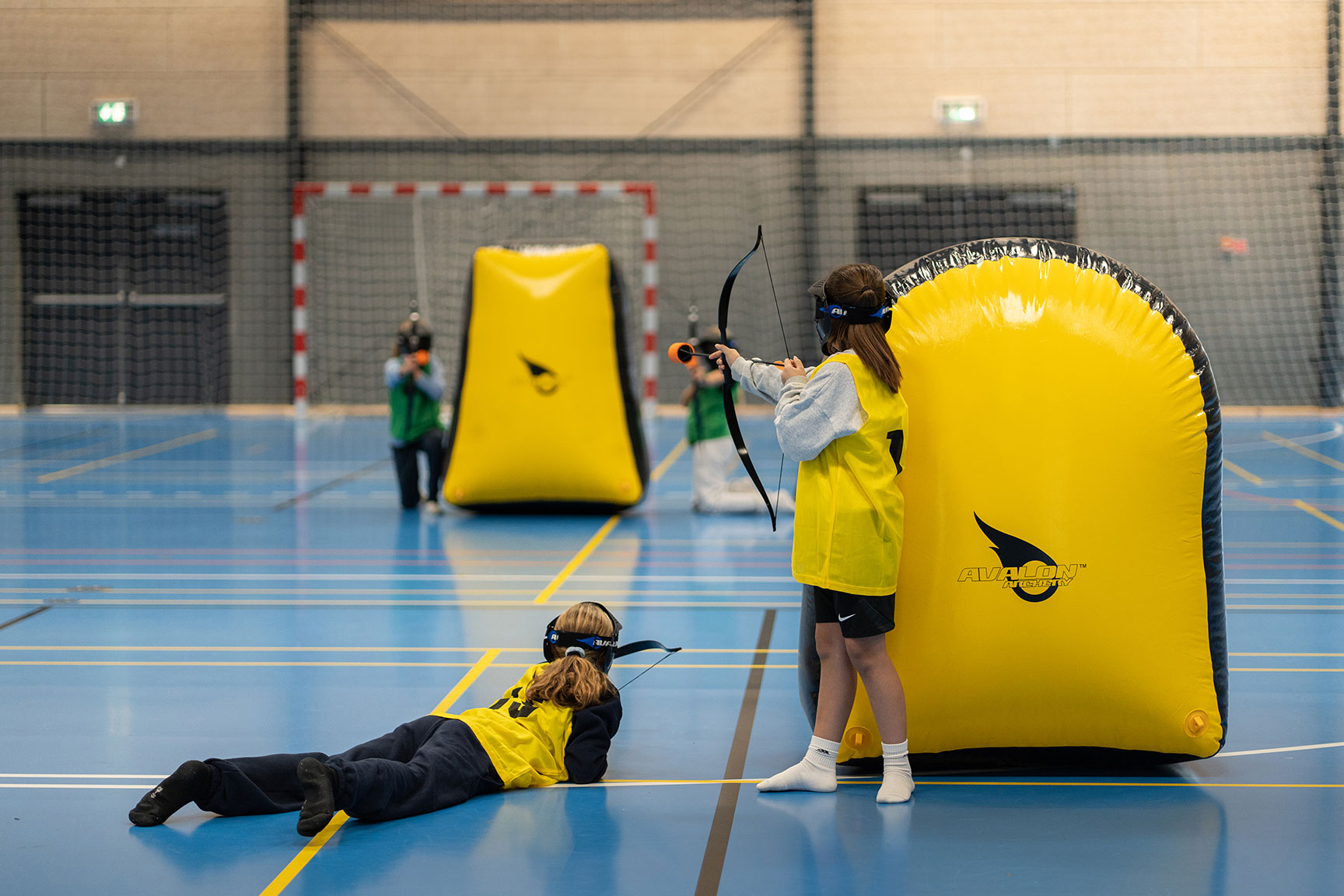 Spillere skal altid bære det nødvendige beskyttelsesudstyr, herunder briller og hjelm, eller full face beskyttelsesmaske. Dette beskytter mod skader fra pilene.