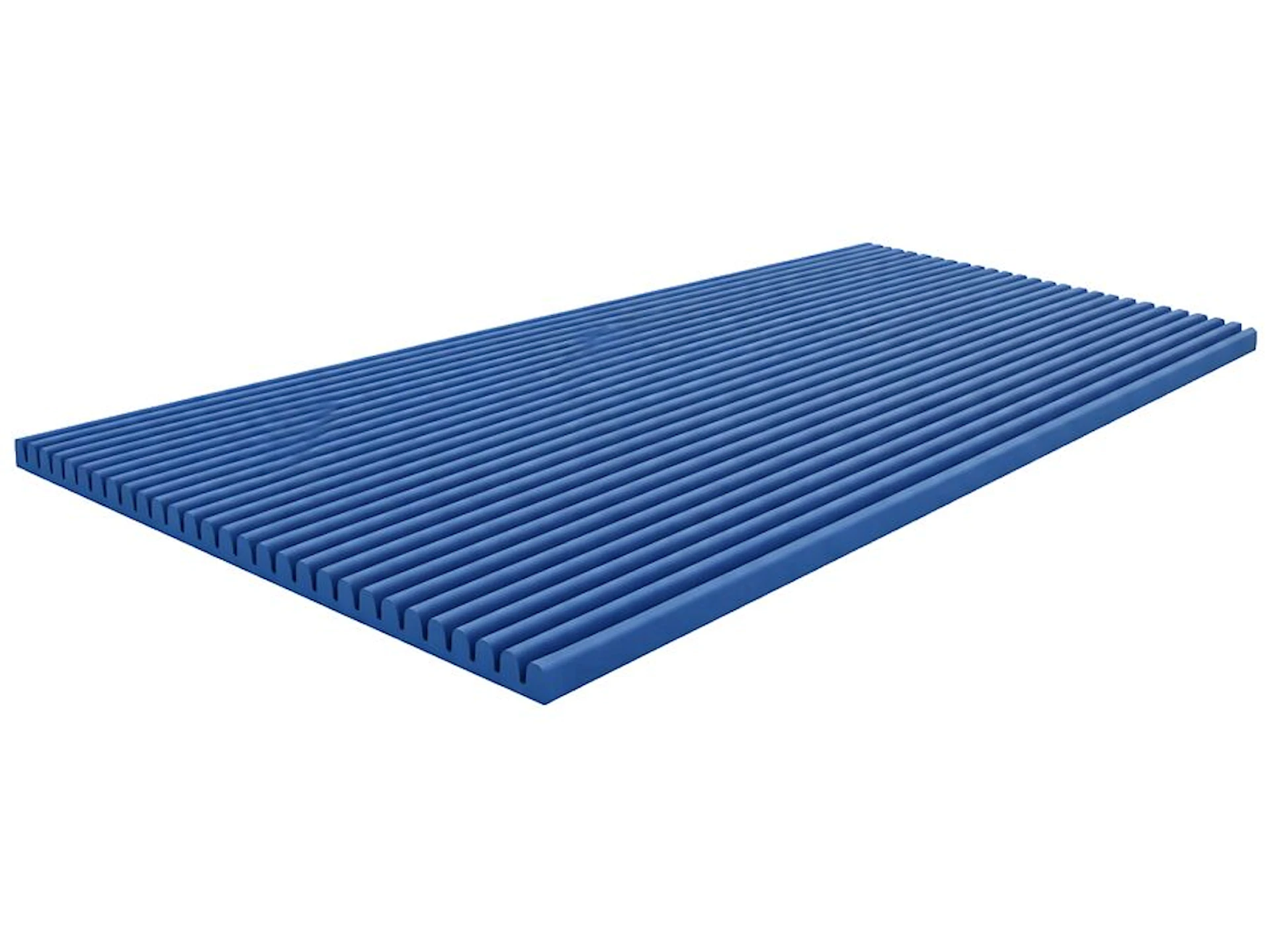 Det særlige ved denne formbare beskyttelsesmåtte er lamelstrukturen på forsiden. Designet gør det muligt at bøje materialet ubesværet omkring skarpe hjørner, runde søjler eller lysmaster. Afhængigt af jeres behov kan lamellerne monteres både lodret og vandret; lodret montering er ideel til runde former, mens vandret montering kan give en anden visuel effekt eller beskyttelse på specifikke kanter.