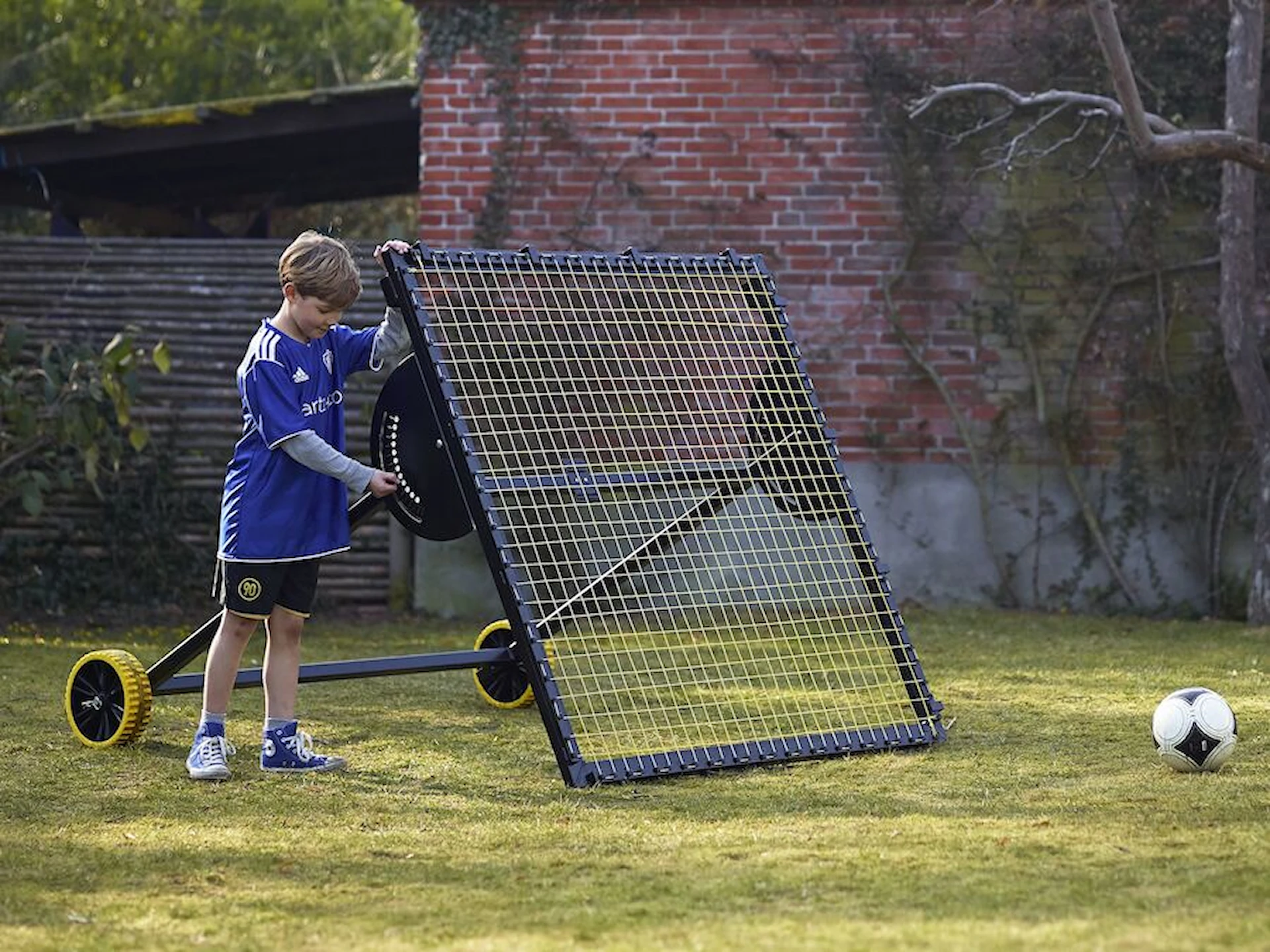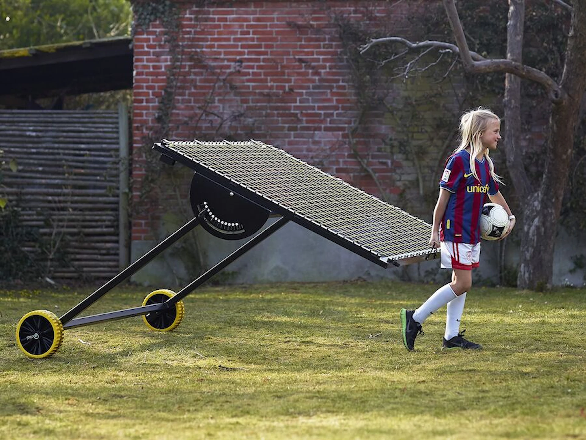 Rebounderen er bygget i rustfrie materialer, med en ramme i aluminium og rustfrit stål og et kraftigt net i 1,6 mm UV-beskyttede nylonstrenge. Den kan derfor stå ude hele året og tåler mange timers intensiv træning. Punkterfrie hjul gør den nem at flytte rundt på banen, og konstruktionen er sammenklappelig, så den kun fylder 145 x 30 x 190 cm, når den ikke er i brug.