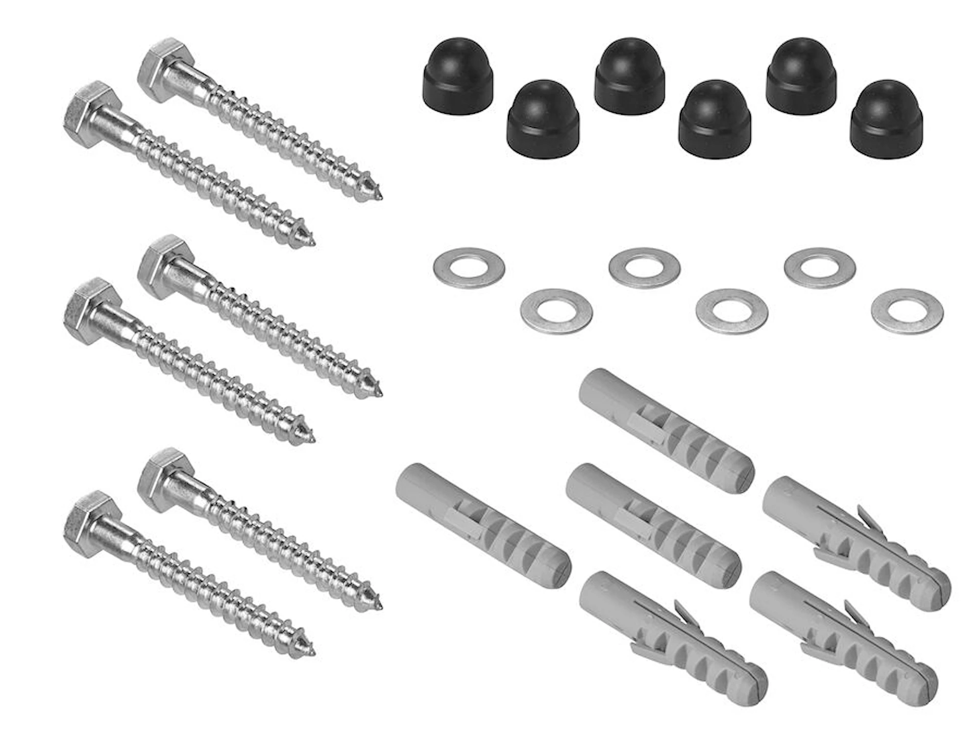 Komponenterne sikrer en stabil forankring og en ren afslutning, hvor dækhætterne skjuler skruehovederne og beskytter dem mod fugt og snavs.