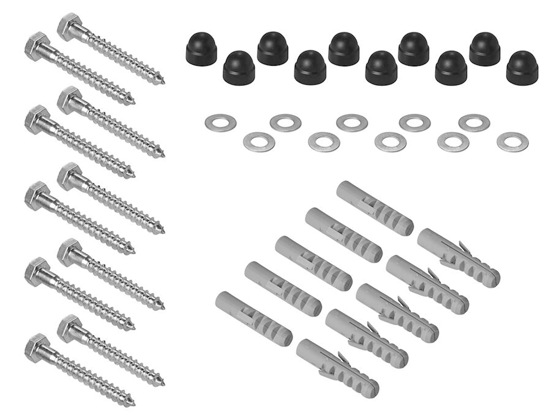 Komponenterne sikrer en stabil forankring og en ren afslutning, hvor dækhætterne skjuler skruehovederne og beskytter dem mod fugt og snavs.