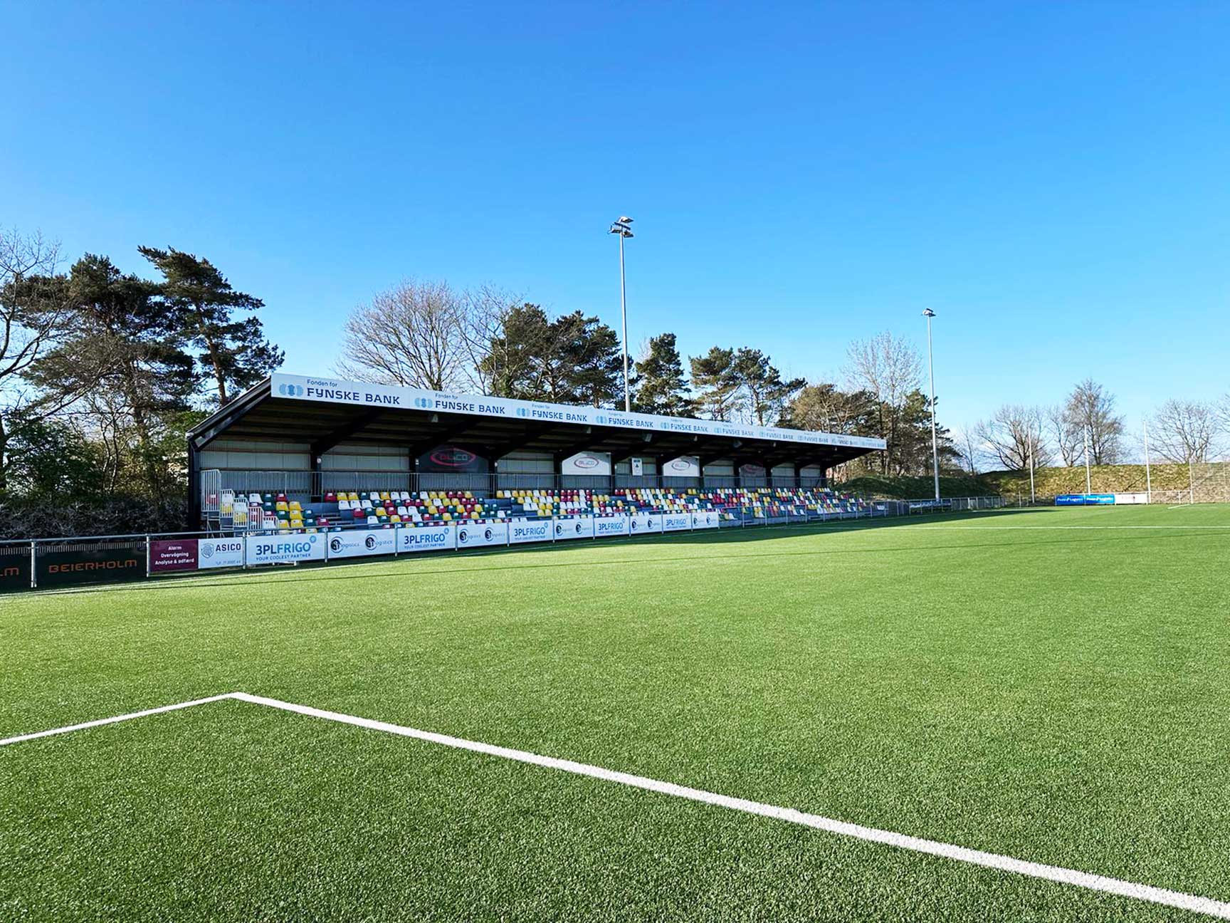 Både tribune og udskiftningsbokse står stadig flot +3 år efter levering. Et klart udtryk for produkternes høje kvalitet og modstandsdygtighed over for slid, vind og vejr.