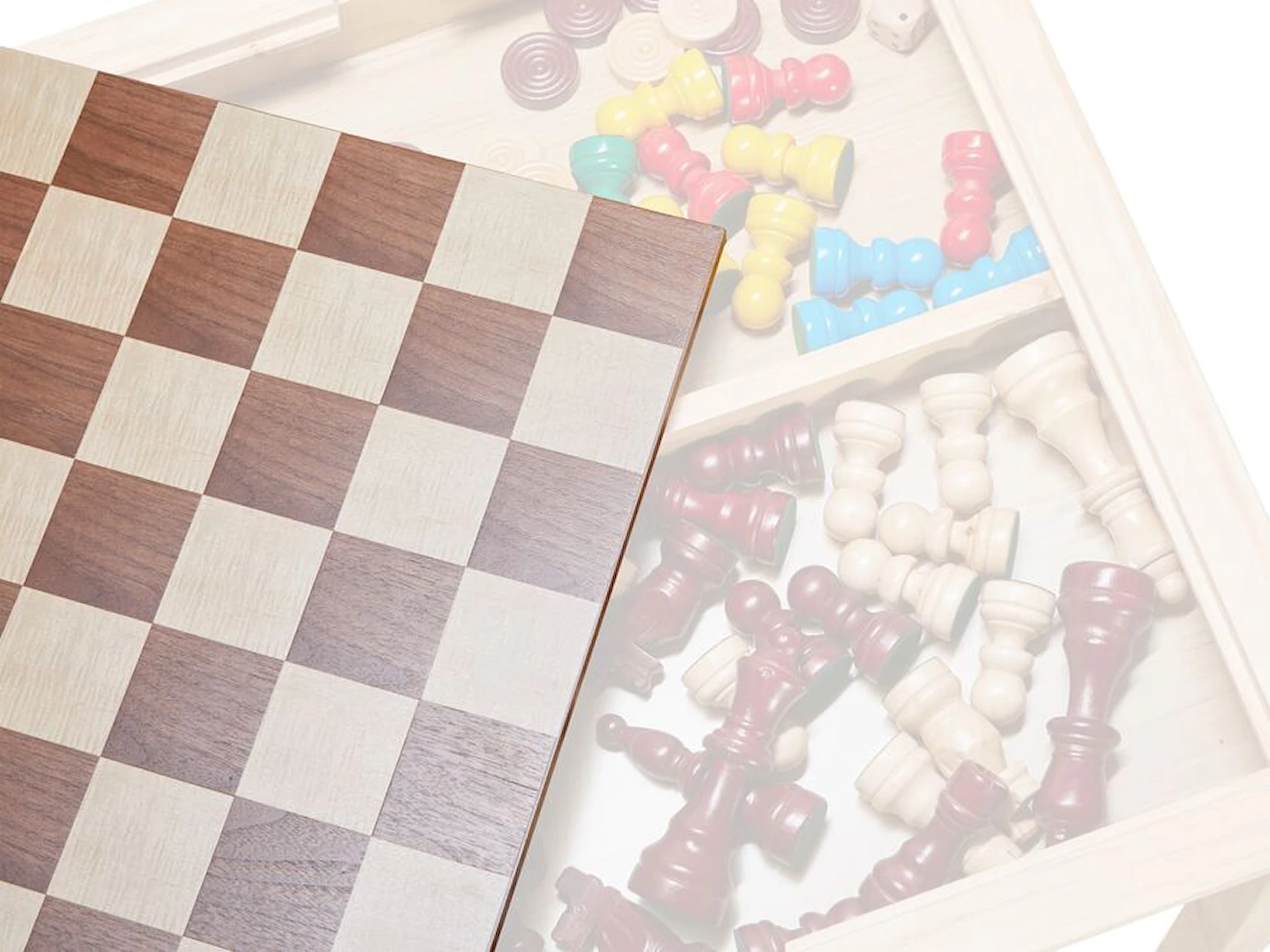 Træpladen er til at ligge på et bord eller på gulvet, men passer også som en fast del af det klassiske skak og ludo bord. Designet fokuserer på overskuelighed og funktionalitet, så spillets gang altid er i centrum. Da spillepladen leveres uden brikker, er der mulighed for selv at vælge det ønskede tilbehør. Skakbrikker, ludobrikker og dambrikker er ikke inkluderet, men kan bestilles separat.