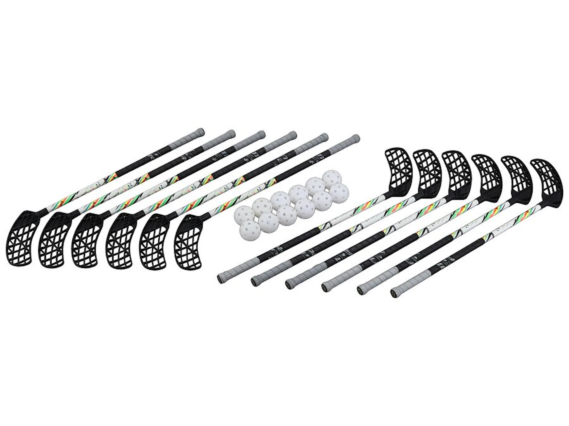 Settet består av 9 svarte venstrekøller og 3 svarte høyrekøller, slik at så mange elever som mulig kan delta i spillet. Det følger også med 12 hvite standard innebandyballer.