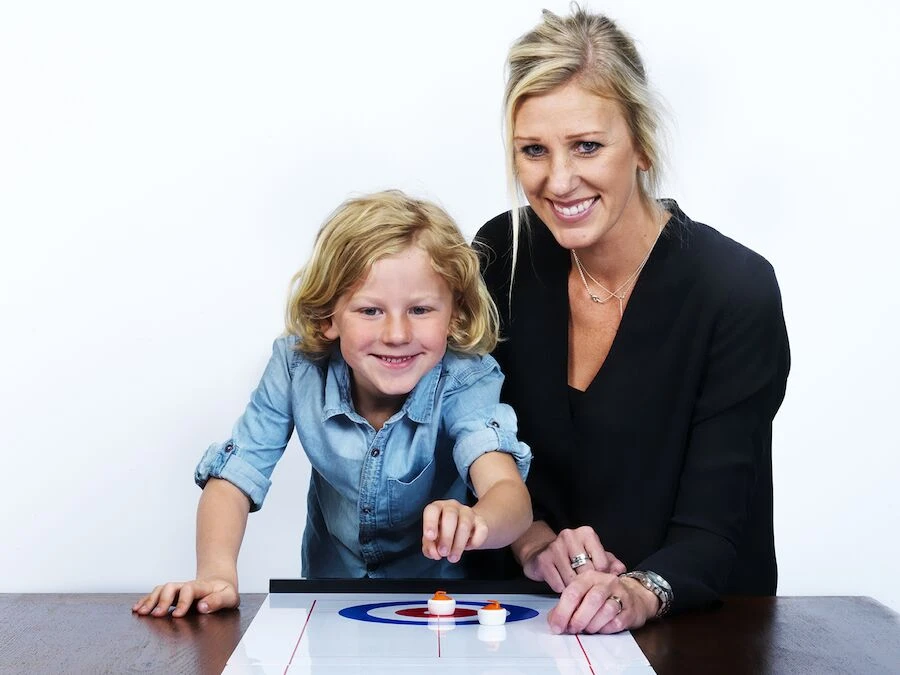 Bordcurling og Shuffleboard 2i1