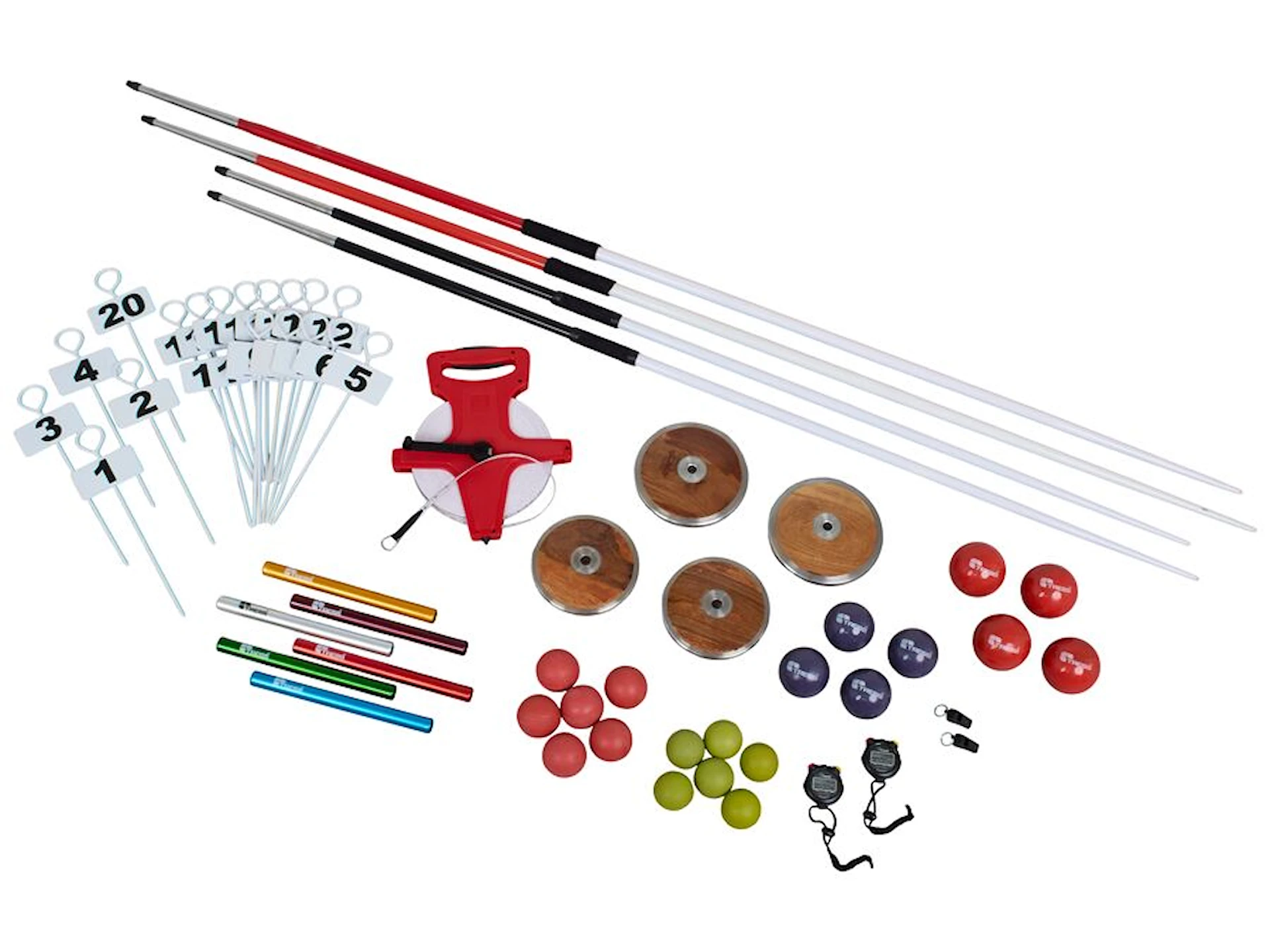 • 2 x Stoppeklokker: For måling av tid innen sprint, stafett og kast med tidsbegrensninger.