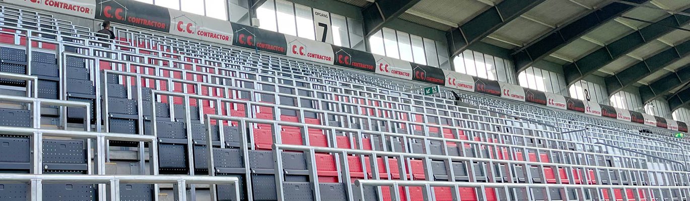 Safe Stands med integrert sete er utviklet slik at hvert sete er innebygd i en robust metallramme som også danner et rekkverkverk for tilskueren på rekken bak. Det kraftige gjerdet fungerer både som et bølgebrytersystem og en beskyttelsesbarriere som minimerer risikoen for press- og fallulykker – og dermed en tryggere stadionopplevelse.
