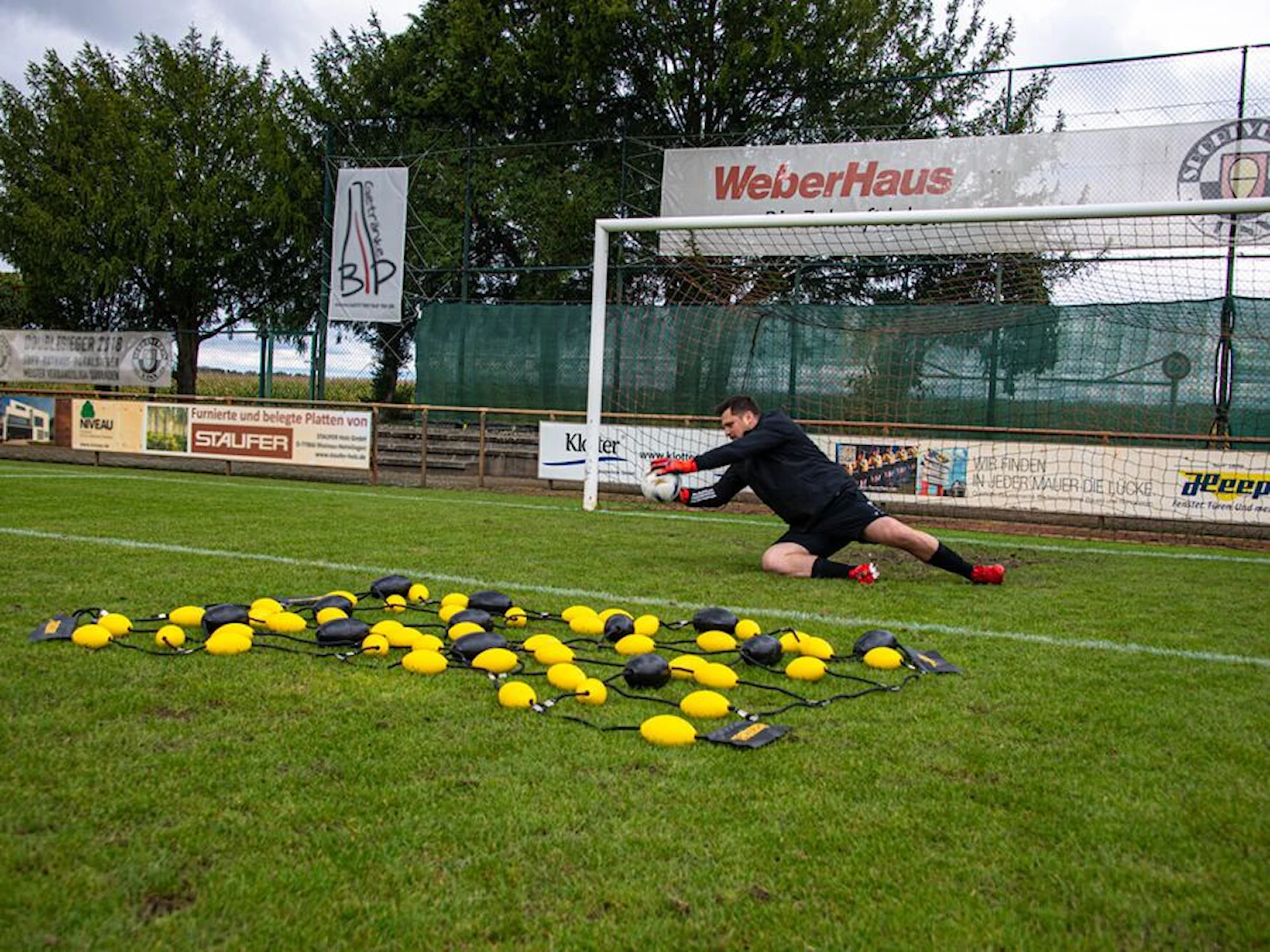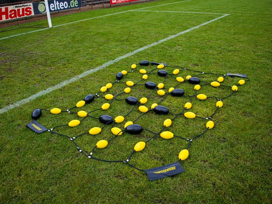 Reaksjonstreneren består av et fleksibelt nett med plastbuer og måler 275 x 185 cm. Den plasseres på bakken og er spesielt effektiv ved lave pasninger eller skudd fra trener. Ballens avvikelse varierer for hvert treff, noe som gjør øvelsene både intensive og uforutsigbare.