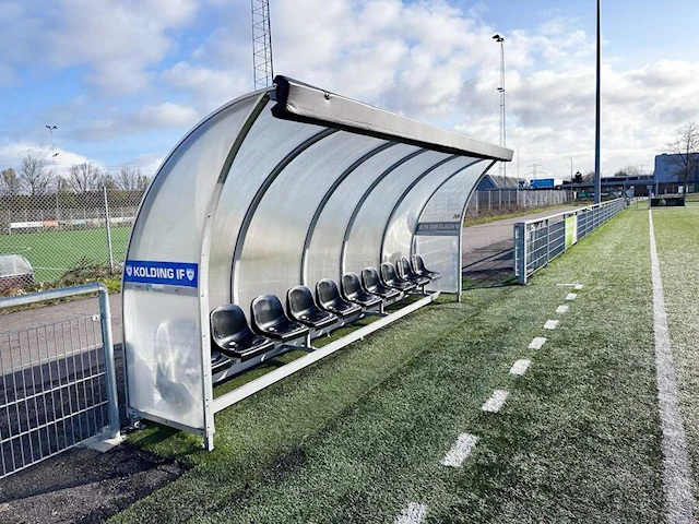 Én til hjemmelaget og én til gjestene. En stabil utbyttingsboks som beskytter spillerne mot vind og vær. Setene har en behagelig ryggstøttehøyde og er produsert av brannhemmende materialer.