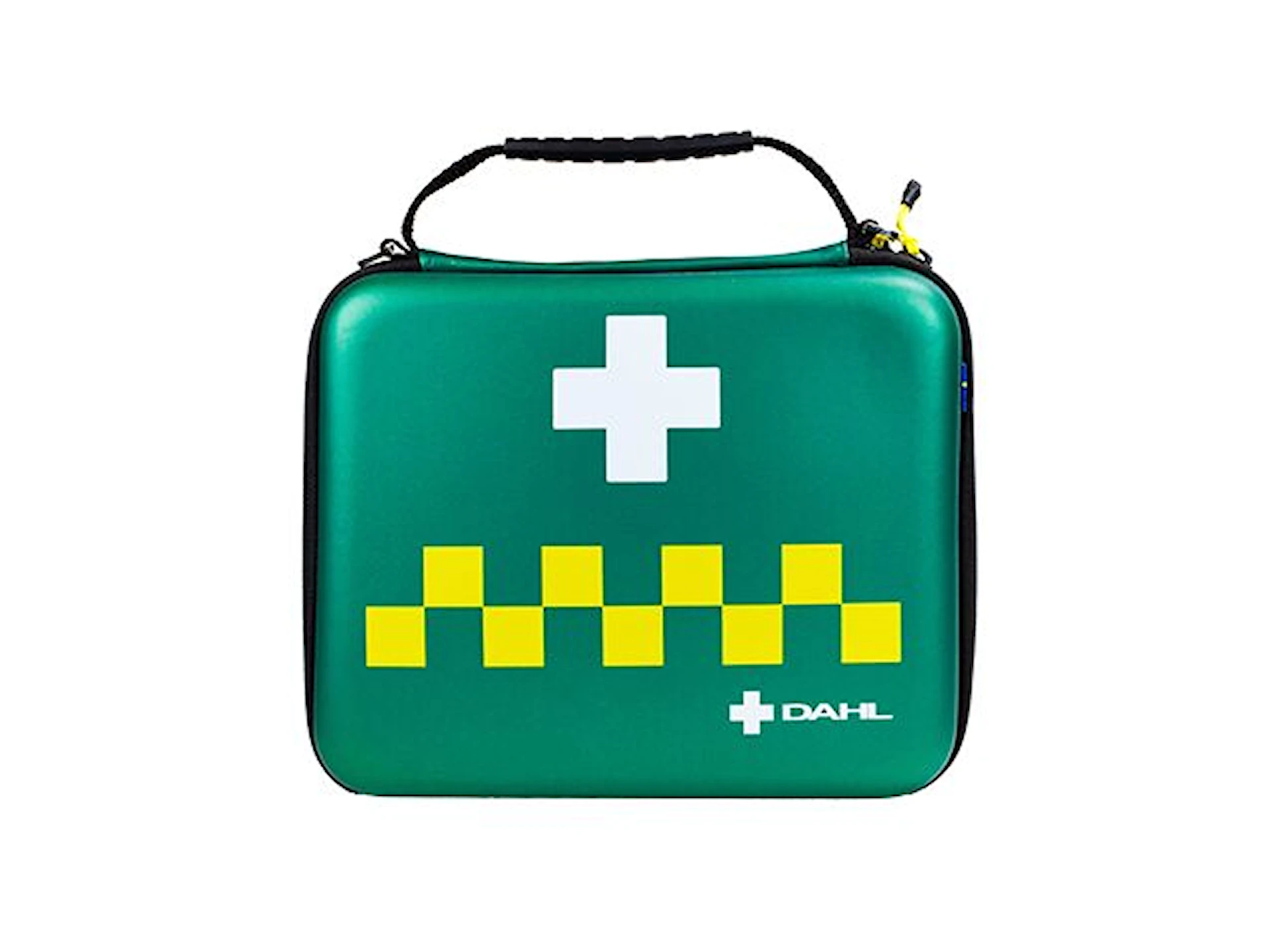 Första hjälpen-väska Large är en hård väska utrustad med ett slittåligt bärhandtag.