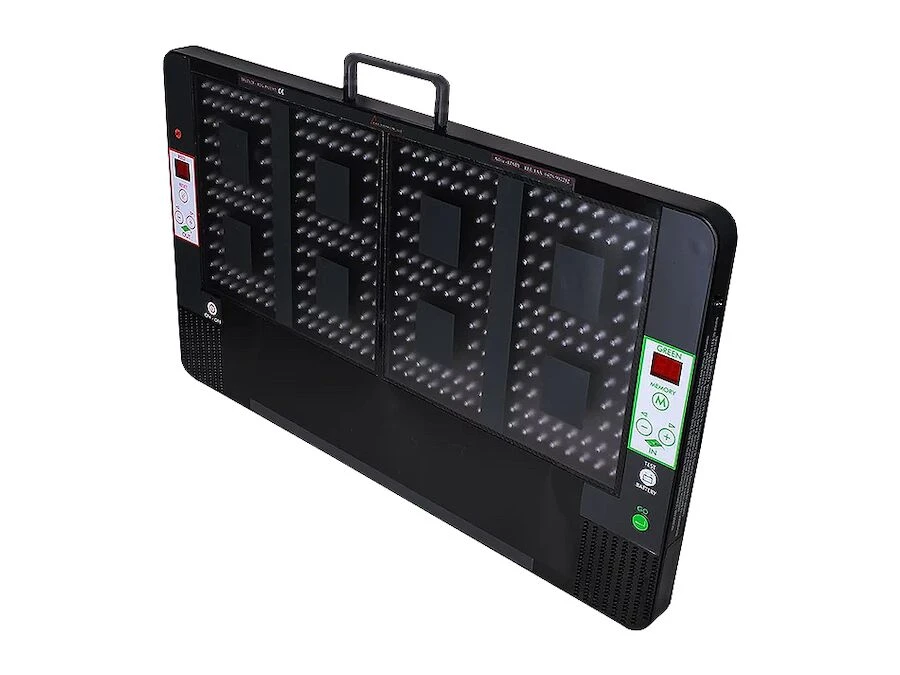 Tavlan kan även användas för att visa tilläggsminuter, vilket gör den mycket mångsidig under matcher. En inbyggd minnesfunktion gör det enkelt att spara och snabbt hämta tidigare spelarnummer, så byten kan ske effektivt. Med LCD-skärm, användarvänlig batterinivåindikator och snabb återställningsfunktion är tavlan lätt att hantera – särskilt i pressade matchsituationer.