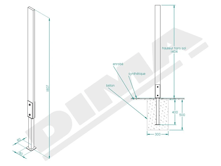 Stolparna kan monteras direkt i marken eller i medföljande hylsor, vilket säkerställer stabilitet och en fast placering på banan.