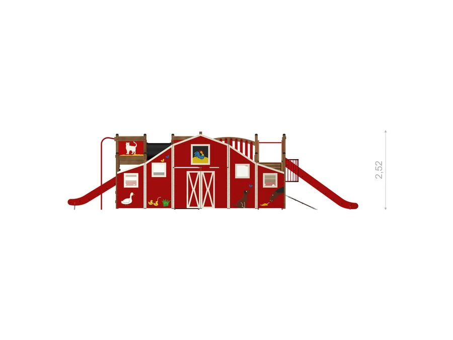 Byggd i robusta material som klarar både väder och intensiv användning, är Bondgården skapad för långvarig lekglädje. Den röda ladugårdsdesignen och de charmiga djurdetaljerna gör lekställningen till en naturlig och iögonfallande mittpunkt i din utemiljö.