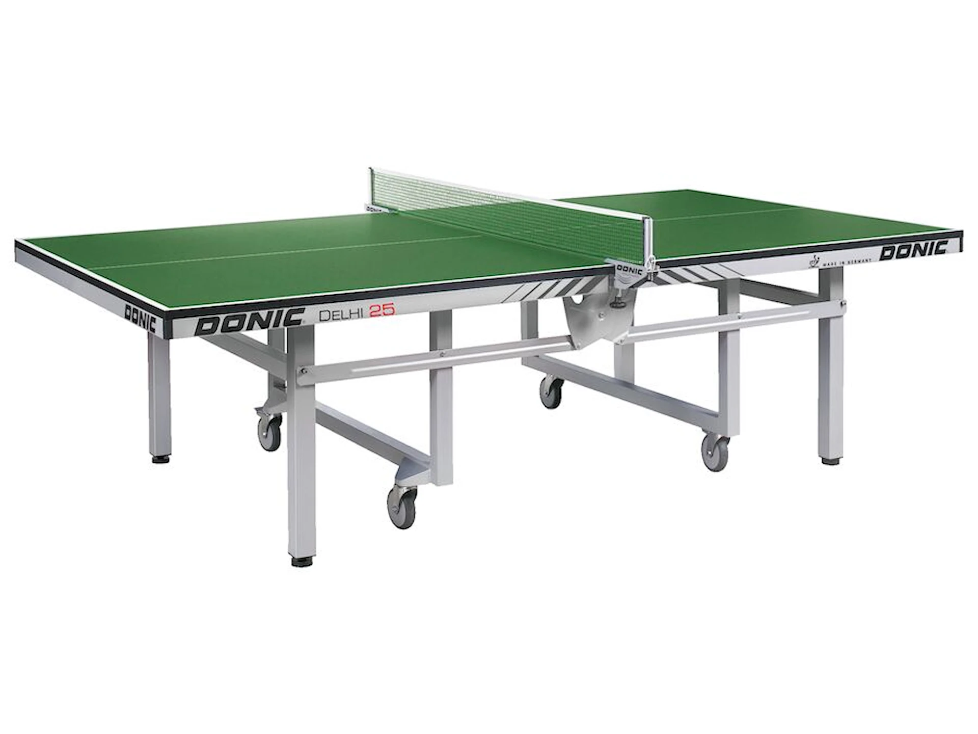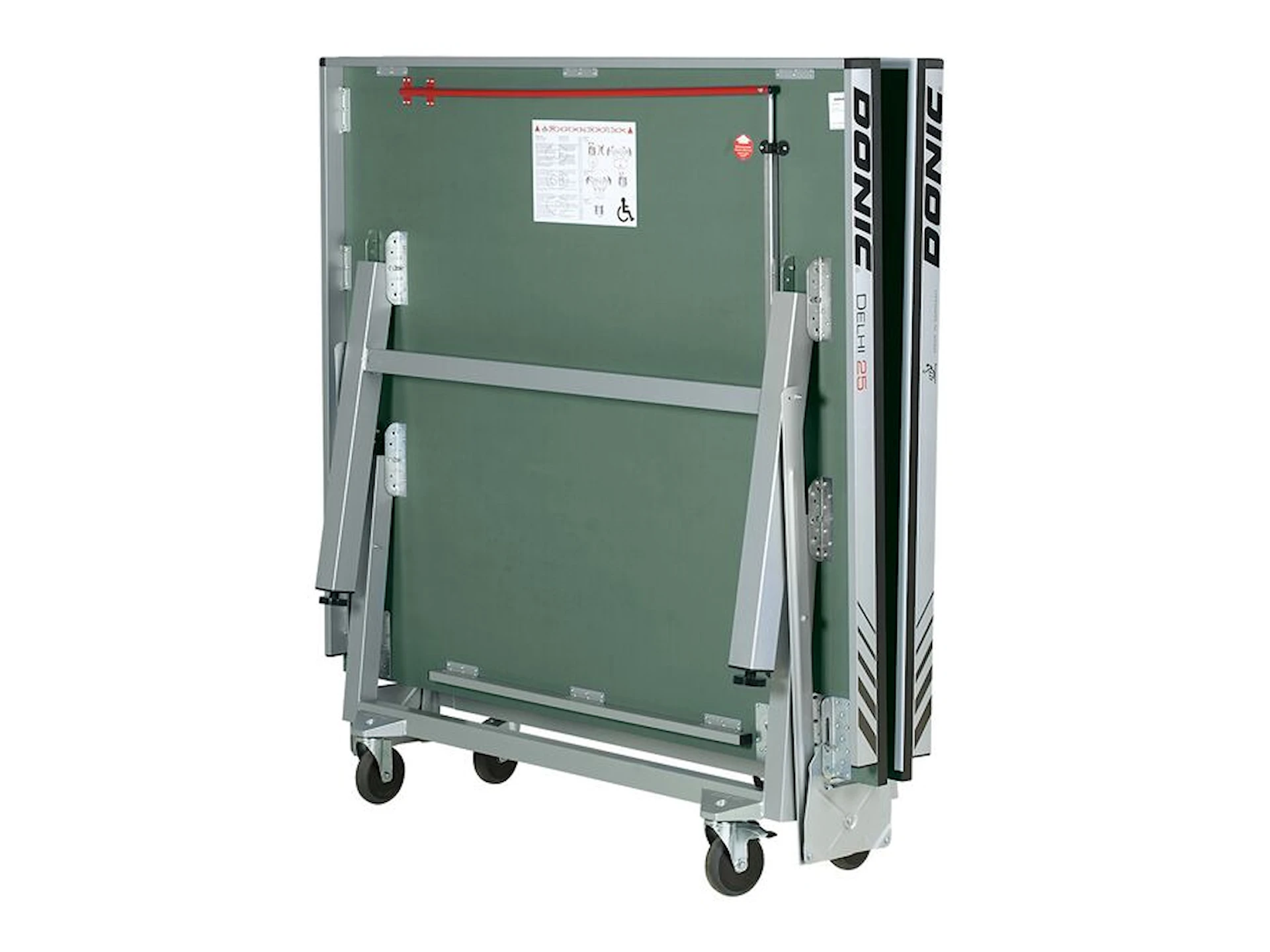 Delhi 25 är byggt med DONICs Super Compact-teknologi och synkronfällmekanism, vilket gör att bordet kan hanteras säkert och enkelt, även av en person. De fyra stora transporthjulen (Ø 125 mm), varav två är låsbara, gör det lätt att flytta bordet, och den platsbesparande konstruktionen är endast 47 cm djup när bordet är hopfällt.