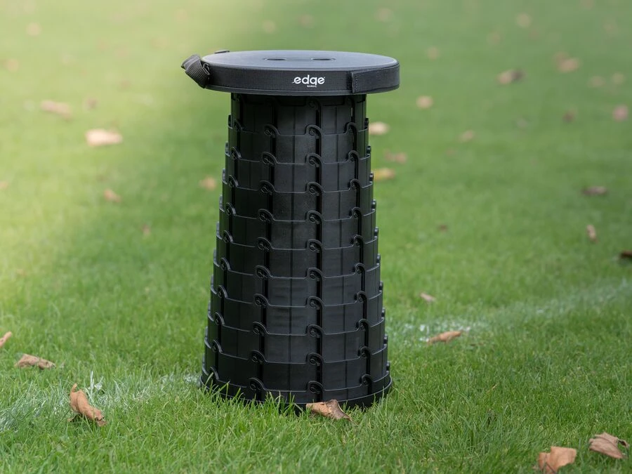 Sitthöjden kan justeras i 11 steg, från 6,5 cm i hopfällt läge till 45 cm i helt utfällt läge. Teleskoppallen kan användas både inomhus och utomhus. Den är utrustad med en axelrem och storleken passar perfekt i en sportväska, vilket gör den lätt att transportera. Pallen är tillverkad av högkvalitativ nylonplast, vilket gör den lätt men samtidigt robust.