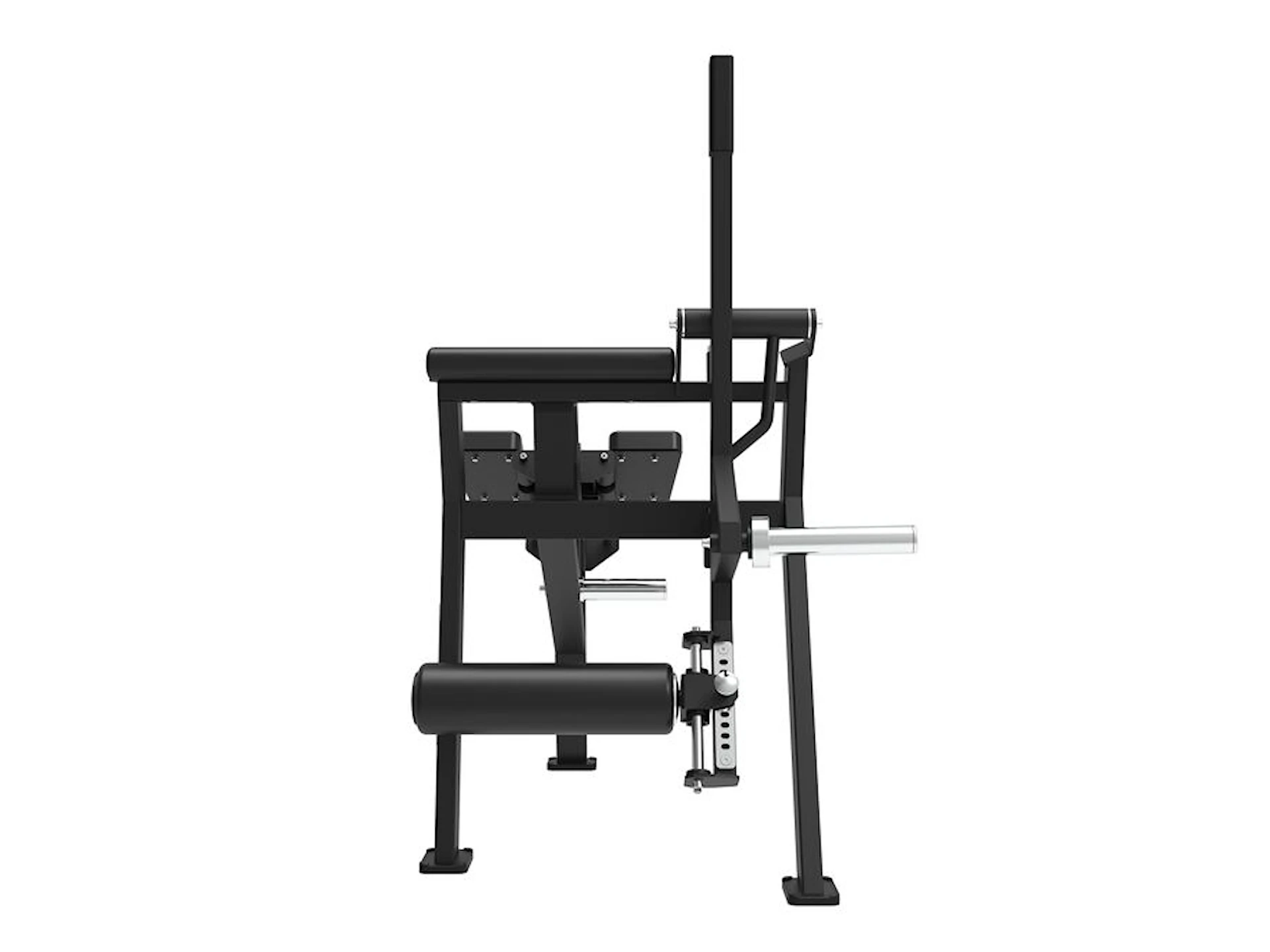 Maskinen har en “load sleeve” på armen, där användaren fritt kan välja belastning med Ø 50 mm viktskivor (viktskivor ingår ej). Dessutom finns en viktpinne på sidan för praktisk förvaring. Den justerbara rullkudden och handstödet gör det enkelt att anpassa startpositionen och säkerställa en optimal träningsupplevelse.