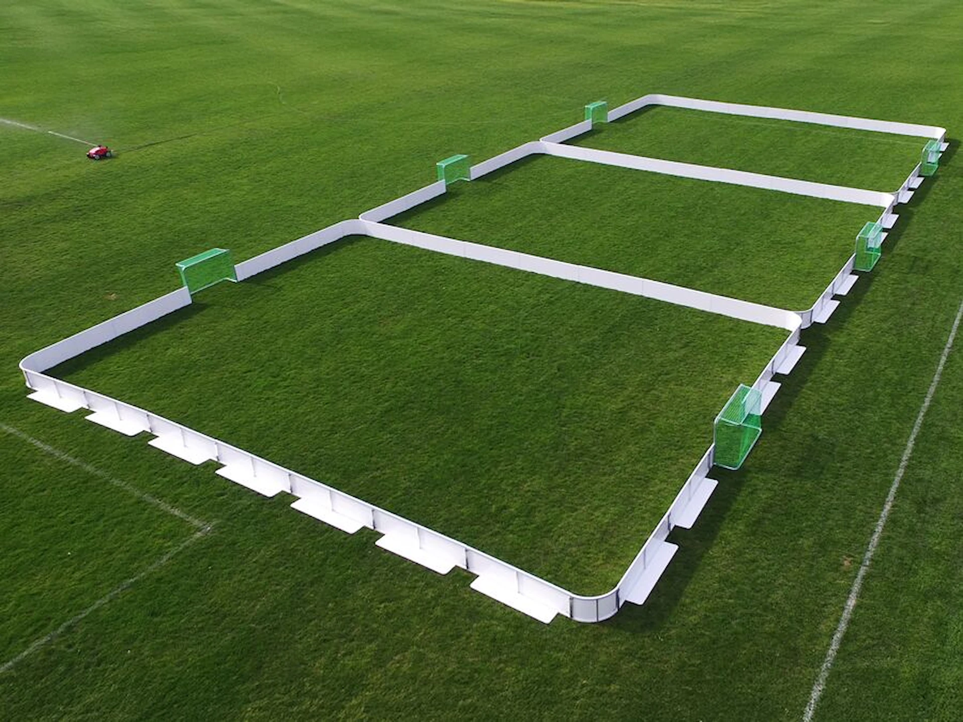 Splitsystemet är konstruerat för året runt-användning och kan placeras på alla plana ytor, såsom konstgräs, naturgräs, asfalt eller betong. Den mindre spelplanen stimulerar teknik, snabbhet och speluppfattning, samtidigt som spelarna förbättrar sin fysik och uthållighet.