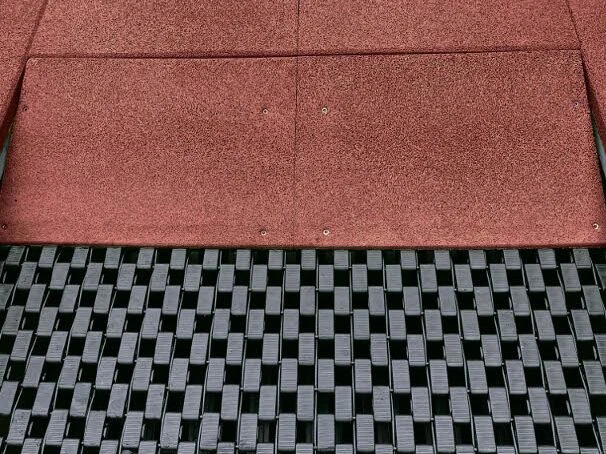 Marktrampolinen levereras med den halksäkra skyddsmattan, nedgrävningsram med en rad fallskyddsplattor och två ramper för kortsidorna. Fallskyddsplattorna levereras som standard i rödbrun färg, men går att beställa i andra färger mot tillägg. Solsegel, stolpar och rep att hålla sig i för en mer självständig upplevelse, kan beställas separat.