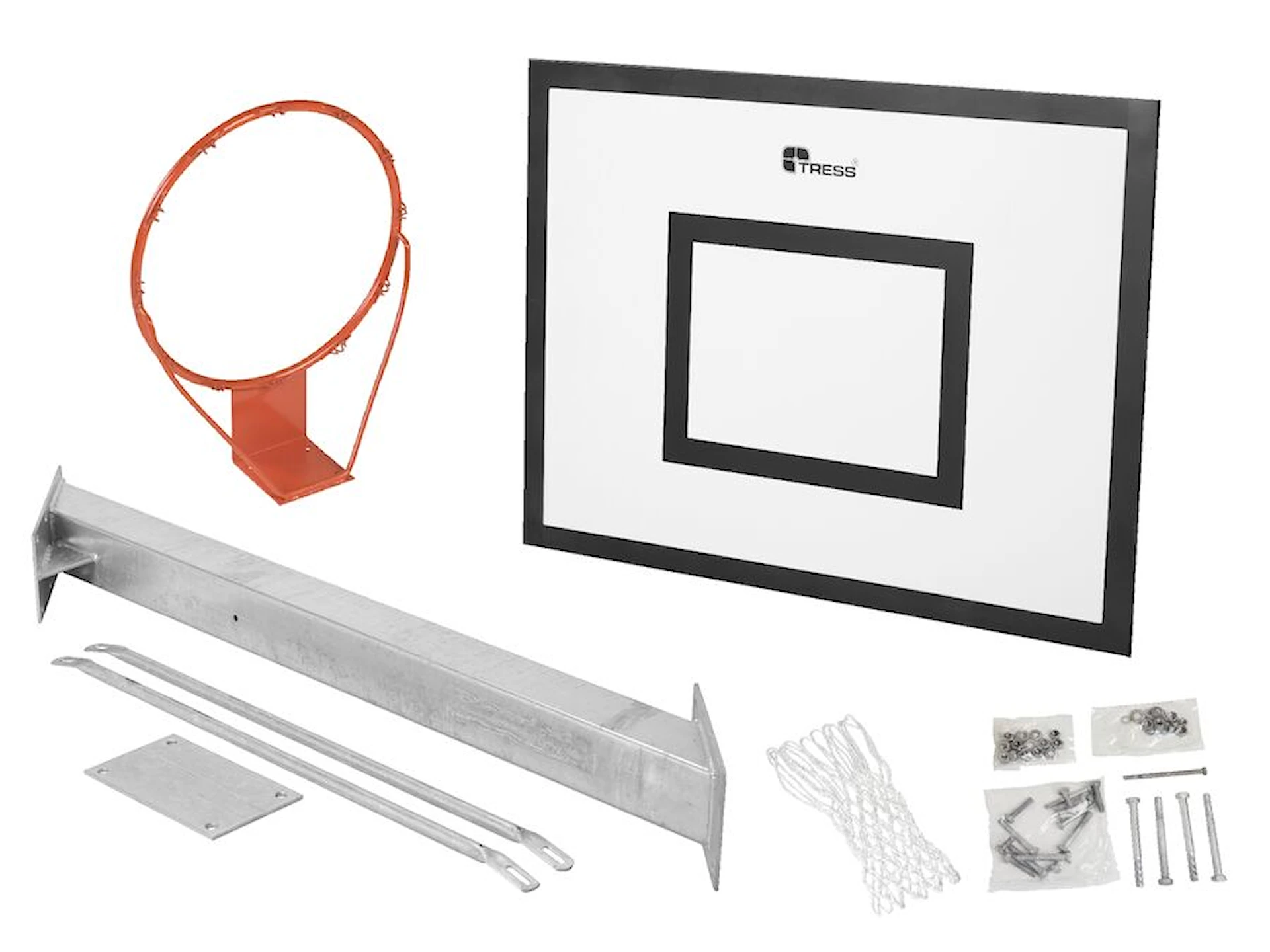 Variant 652817 innehåller: PP-platta av polypropylen 122 x 92 cm 652843, pulverlackerad basketkorg 653165, nylonnät 653292.
