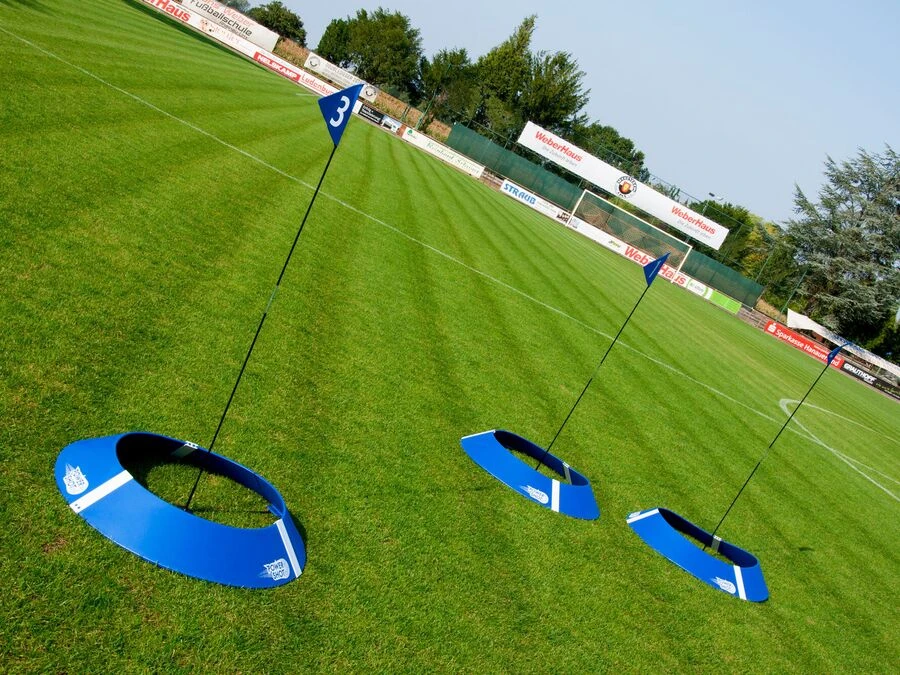 Med en robust kombination av metall, skum, plast och glasfiber är målen både stabila och slitstarka. Varje mål levereras med en lätt glasfiberstav och en markeringsflagga som gör målzonen synlig på håll.