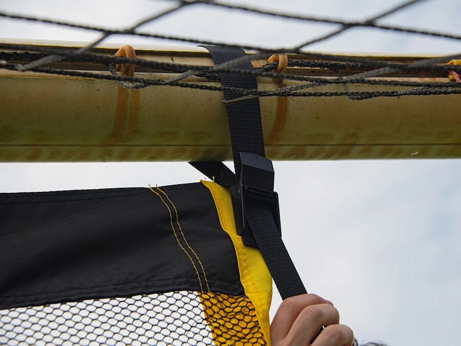 Duken monteras enkelt med remmar runt målets stolpar. Passar utmärkt för både individuell träning och lagövningar. Finns i flera olika mått.