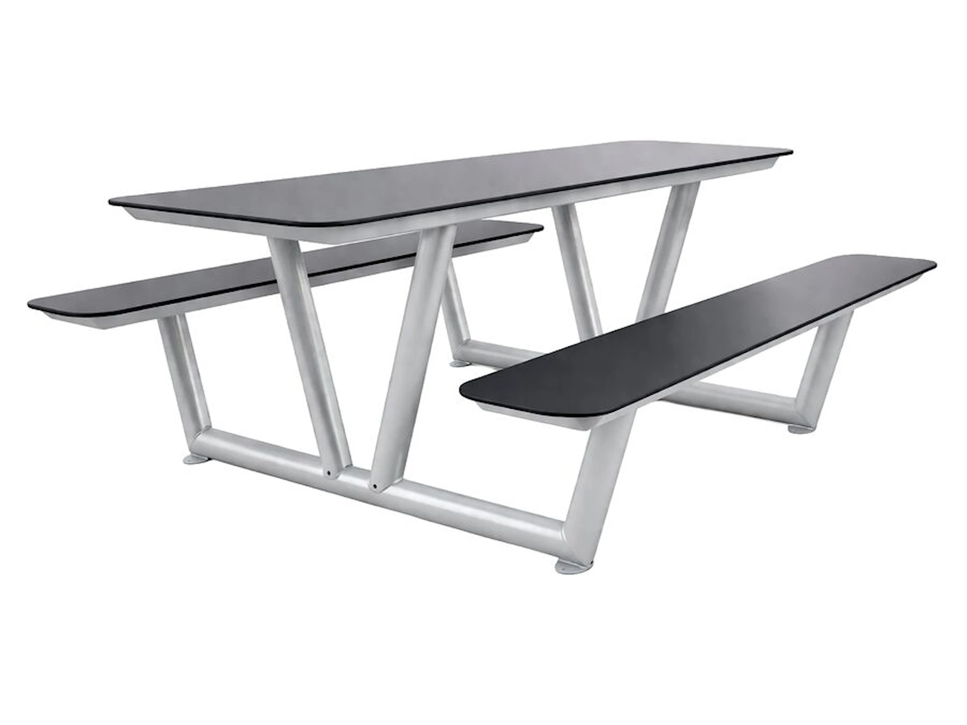 Bänkbordet finns i tre olika varianter; pulverlackerad grå RAL-färg 9006 eller varmförzinkat. Du kan även välja bland andra RAL-färger på benställningen efter önskemål.