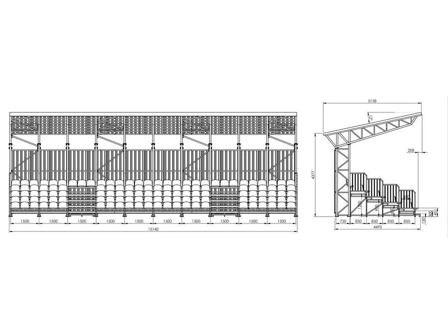 Läktaren kan levereras med olika antal sittplatser och rader, samt exempelvis med stolar i föreningens färger. Kontakta oss så hittar vi tillsammans den lösning som passar era behov bäst.