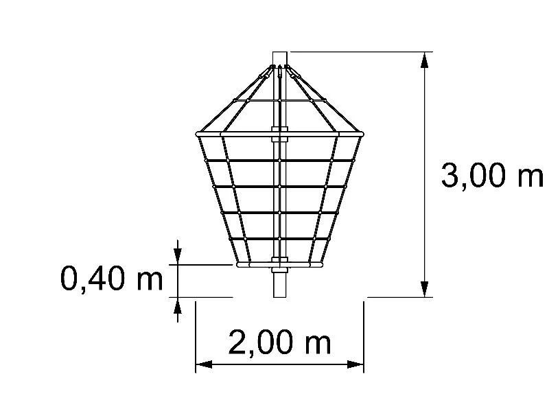 Den centrala mittstolpen är tillverkad av aluminium och pulverlackerad i svart. Repen består av 16 mm Taifun-rep med inre förstärkningar och plastförsedda krysskopplingar. En mycket robust konstruktion, speciellt framtagen för att klara det skandinaviska klimatet.