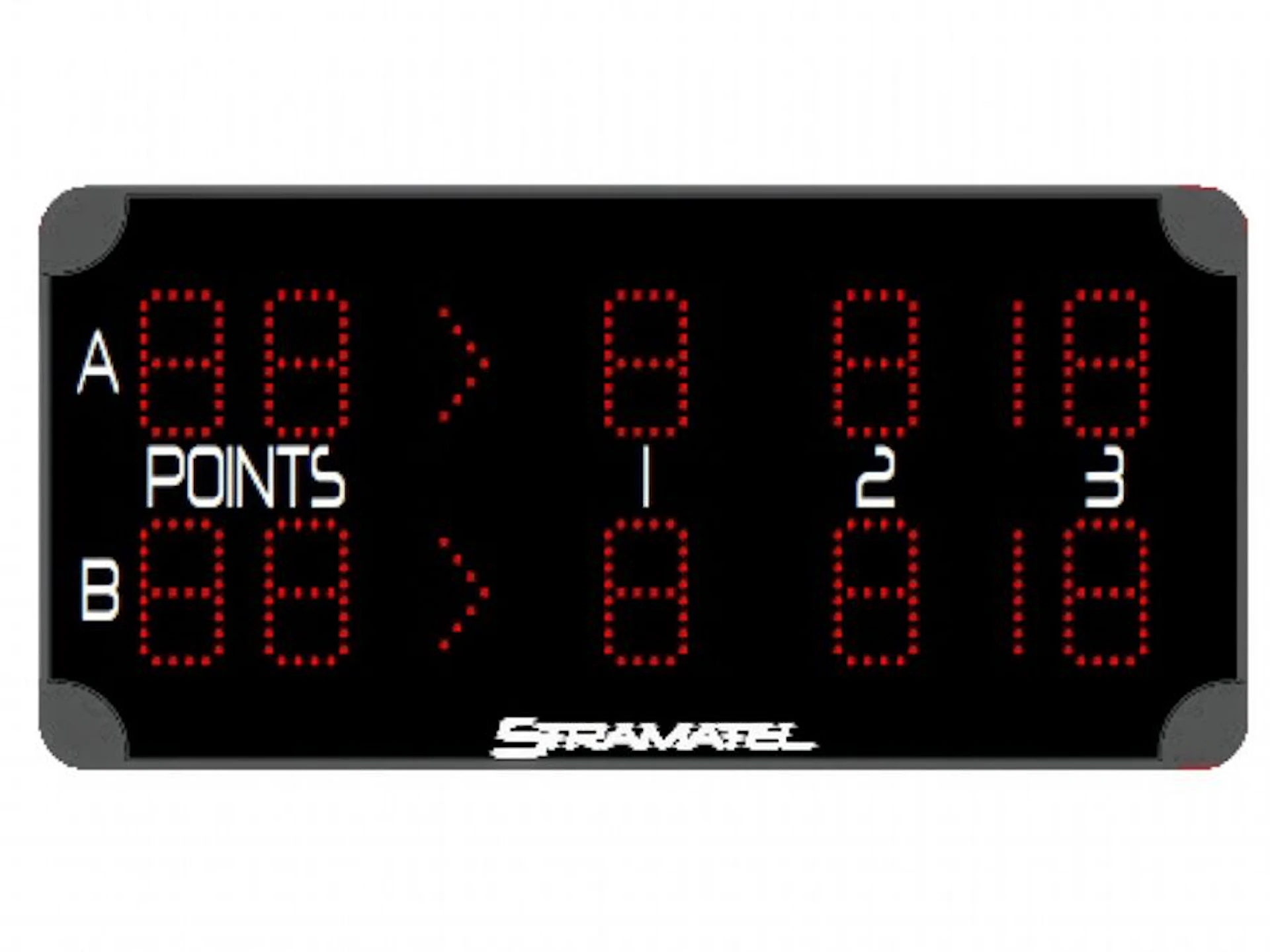 Den ljusstarka LED-displayen med 9 cm höga siffror ger läsbarhet upp till 35 meter och en bred betraktningsvinkel över 160°, vilket gör att resultatet syns tydligt runt hela banan.