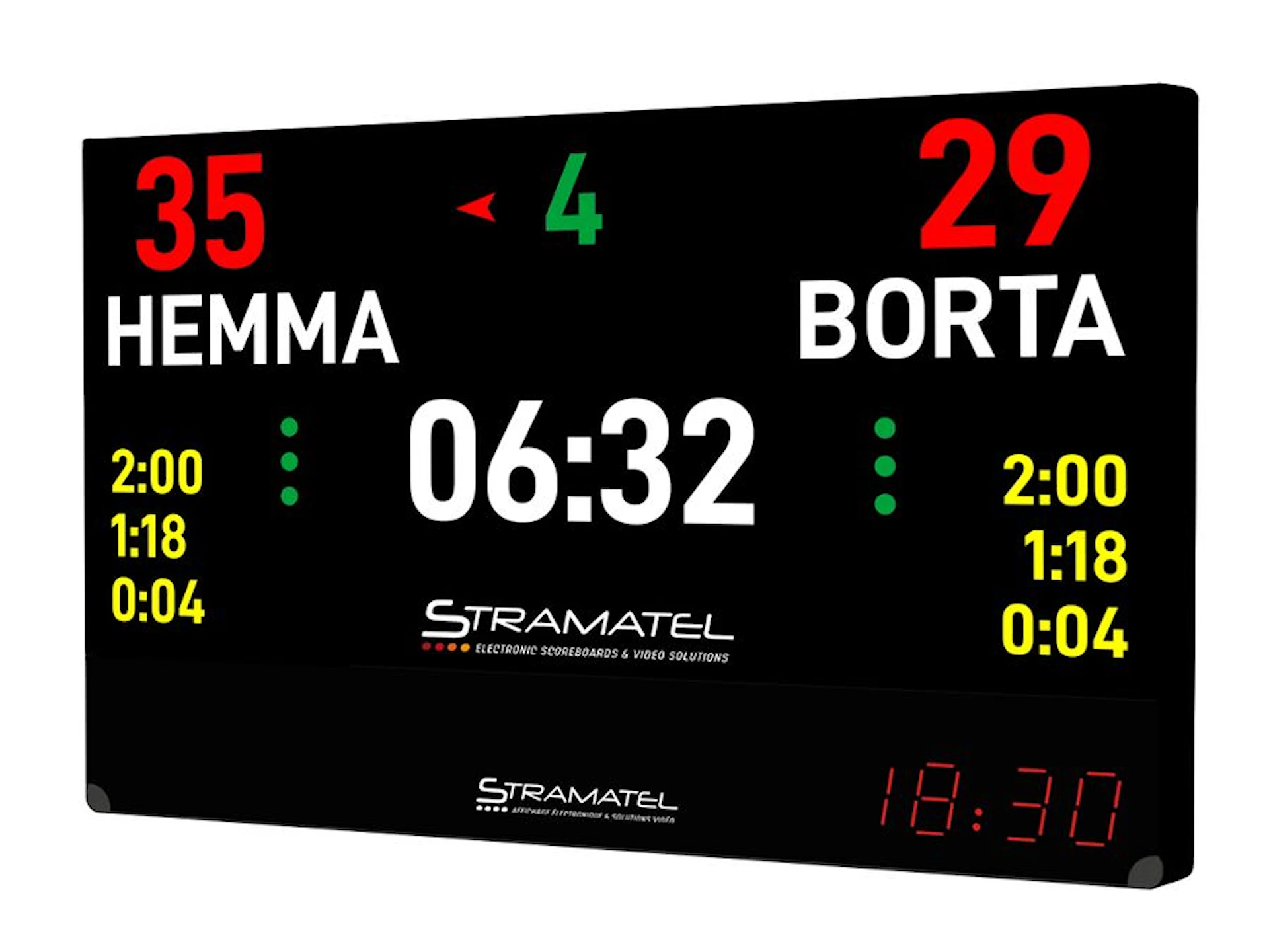 Den högupplösta LED-skärmen gör det enkelt att visa matchresultat, sponsorbudskap och animerade videosekvenser som lyfter evenemangets atmosfär. Tack vare det inbyggda mediesystemet kan du smidigt ladda upp egna filer och styra allt via Stramatels FIBA-godkända kontrollpanel. Resultatet är en flexibel, tydlig och publikvänlig lösning för moderna sporthallar.