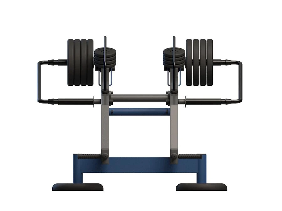 Denna maskin är designad för att aktivera större delen av kroppen, där framför allt baksida lår, rygg och mage får extra fokus. Kombinationslyft kallas ibland för dead lift och du kan även träna skivstångsrodd i den här maskinen. Åtta gummivikter på 25 kg och åtta gummivikter på 2,5 kg ingår, vilket kan ge en maxlast på 220 kg. Standardfärgen är blå RAL 5010. Vid beställning av minst 6 maskiner får du fritt färgval.